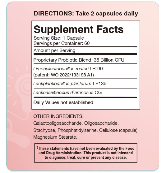 •   3 Exclusive Neurologically Active Probiotic (Psychobiotic) Strains